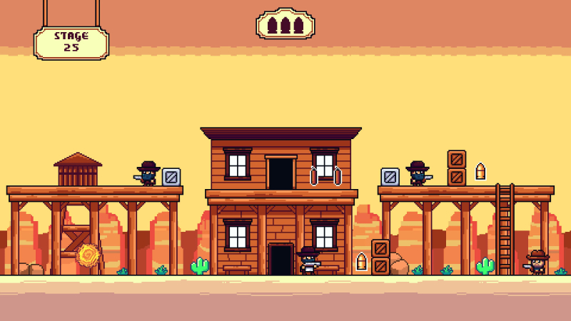 Virtuous Western is a unique puzzle game in the sense that you start each of the wild west themed levels with no bullets. Part of the solution requires picking up the bullets one by one and using them to defeat the enemies who may be in the way of the next bullet. Defeating all enemies without being killed yourself will complete the level. As you get through the levels more gameplay features are introduced including shooting explosive barrels, dropping blocks on enemies heads and throwing dynamite.